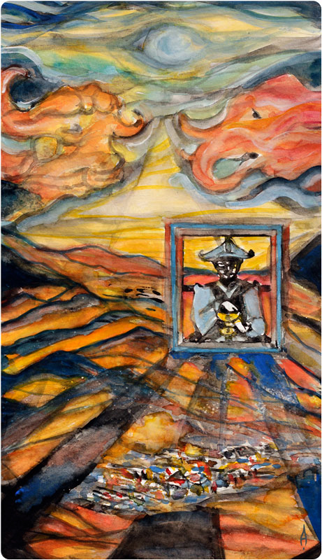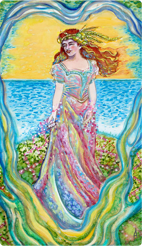 Drawing on 30 years of esoteric knowledge, the visions that Joanna discovered within the cards, eventually flowered into the book โThoth Journeyโ, the inspiration for a series of 79 paintings with which Aia interprets each story. The artistsโ translucent flowing style and her generous use of colour provides the perfect visual accompaniment to the fertile and luxuriant narrative. The resulting Oracle is a beautiful and timeless offering. Rooted in the dark shadows that inevitably fall across the human experience, this rich and poetic work has been lovingly crafted from the inspiration of two people who wish to share their gifts of art, intuition and wisdom with the world.
