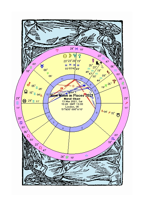 This New Moon falls in my own 10th House, concerned with public life, my work in the world, the branches that I am sending forth. Now that the book that I have written is out in the public domain, and people are reading it and reviewing it, it seems that on some level I have “finally arrived”, (in my own mind!). This New Moon will help me to focus on developing a more consolidated approach to my work, to build on the more rewarding aspects, and to give less energy to the areas that are less so. Pisces is a sign that can suffer from a lack of focus, and also weak boundaries, so this will be the foundation stone of my work for the next six months, to try to connect with the “bigger picture” in terms of my work, and yet not to get so lost in the unnecessary details and deviations that I achieve this at the expense of myself. I need to learn to work smarter, to develop stronger structures, and to learn that ‘less’ is quite possibly ‘more’.