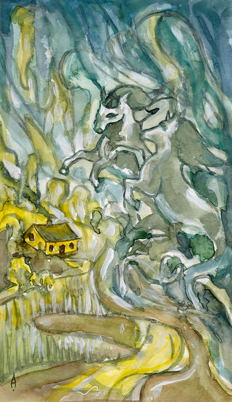 In this case, the sabian symbol of “unexpected storms” combined with the imagry of this card, point towards events of a firey nature.