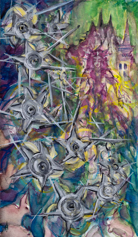 In the second image, we are challenged to transform any feelings of weakness or inadequacy into a state of calmness and confidence, a skill which will help us to develop the inner strength required to meet difficult situations with equanimity and composure. By turning our attention inwards, away from the external world of distractions, we can experience an increased sense of being and are better placed to bridge the divide between the incarnate and the transcendent. The tranquillity that lies beyond the struggles and victories of the ego or personality is where we can connect more fully with the wisdom and guidance of the soul, helping us cope with the stress of our daily lives and respond to change a positive and constructive way.
