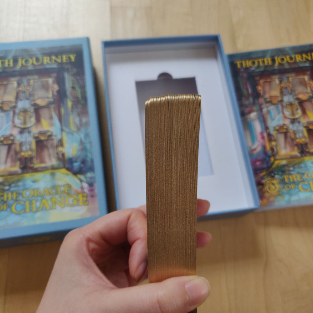 A well thought out and executed variant to the traditional Thoth. I particularly like the borderless design with the gilded edging. The artwork provides almost an oracular dream feel that inspires insight. The cards are easy to manage and the accompanying full size color illustrated handbook is rich in content consistent with encouraging the readers state while bonding with the cards. A real value for the price. The deck will launch the practical reader into a unique journey as well as gratify a collectors passion for something unique.