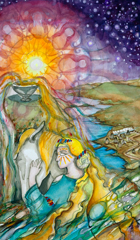 Every year, as the star of Isis rises again over the eastern horizon, the dry aridity of the bleached and bone-hard desert comes alive with the arrival of the flood waters. Covering the burning sand like a cool unguent, the water quenches the aching thirst of the parched desert like a lover home from war. She feels the sensuousness of it in every pore of her skin, the yearning and the waiting, followed by the glorious blossoming of relief, satiation, and arrival. Yet, despite the tranquillity of the vision in front of her and the love and peace it brings, she begins to feel there is some further presence she cannot see; alerted by her animal senses, she turns to look at the reality growing behind her.